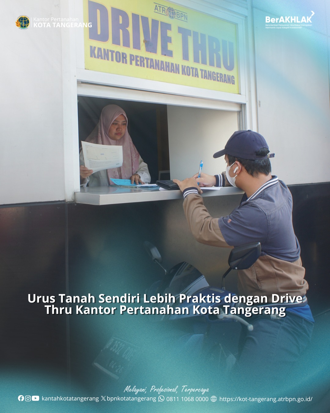 Konsep Drive Thru BPN Kota Tangerang menawarkan kenyamanan, kecepatan, serta efisiensi waktu, dalam pelayanan yang lebih maximal.